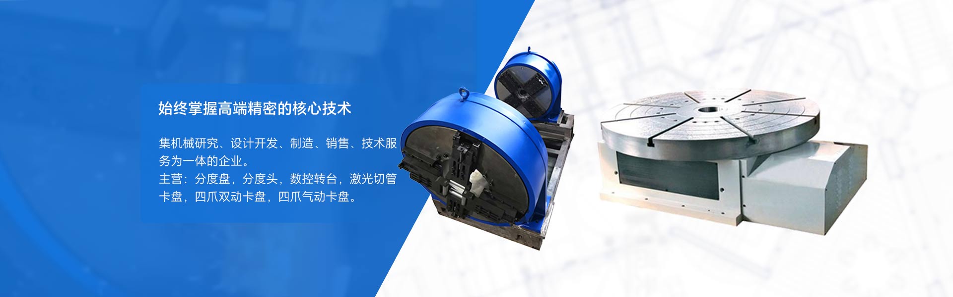 MANUFACTURE 主營分度盤,分度頭,數控轉臺,激光切管卡盤,四爪雙動卡盤,四爪氣動卡盤等